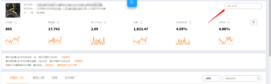 这里需要注意看数据的时间,一般来说转化时间我们看15天累计的,其他的数据建议大家尽可能选择长时间的数据,你调整的很频繁至少要看1个月的数据,如果你调整频次太高,数据会被打乱!这时你其实看不到在哪个数据的表现下最好,所以要想数据相对精准,时间线就得拉长!