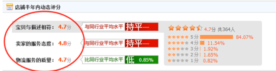 淘宝天猫对这个的权重一直在增加,这个也是你店铺综合服务的结果体现。我们尽量不要让这个评分低于4.7以下,不然就会飘绿,而决定新品搜索扶植多少一个非常重要的因素就是你店铺的综合质量得分,得分越高,宝贝获得的机会就越多。