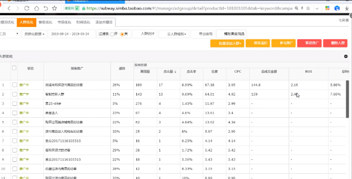 毕竟我们有了流量和访客都是为了转化带来销售,如果转化率低也无法留住这些流量。首先从选词来说,一定要选适合自己宝贝的,而且直通车的人群投放要精准,可以通过溢价来调整人群,投放的渠道也要适合自己。